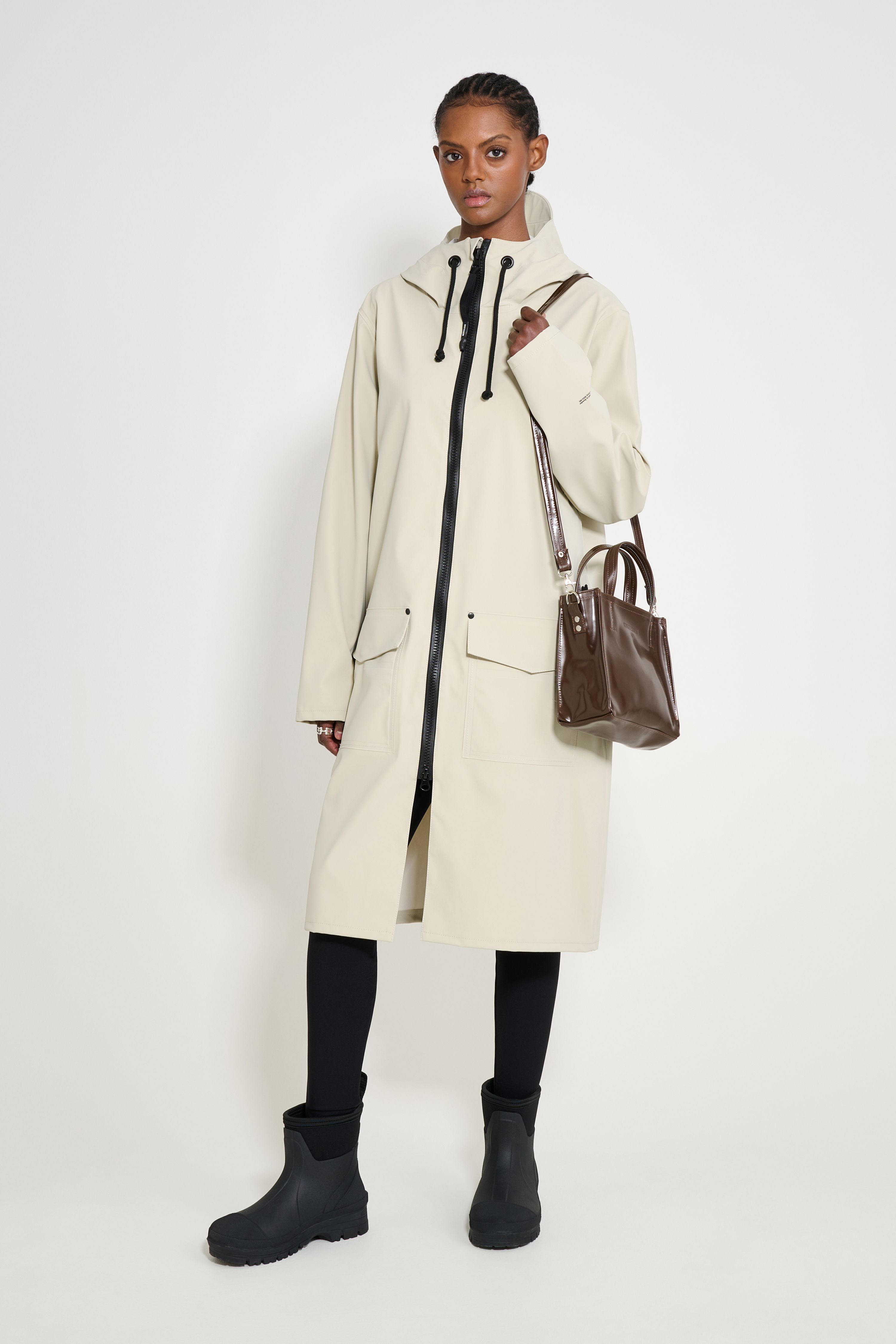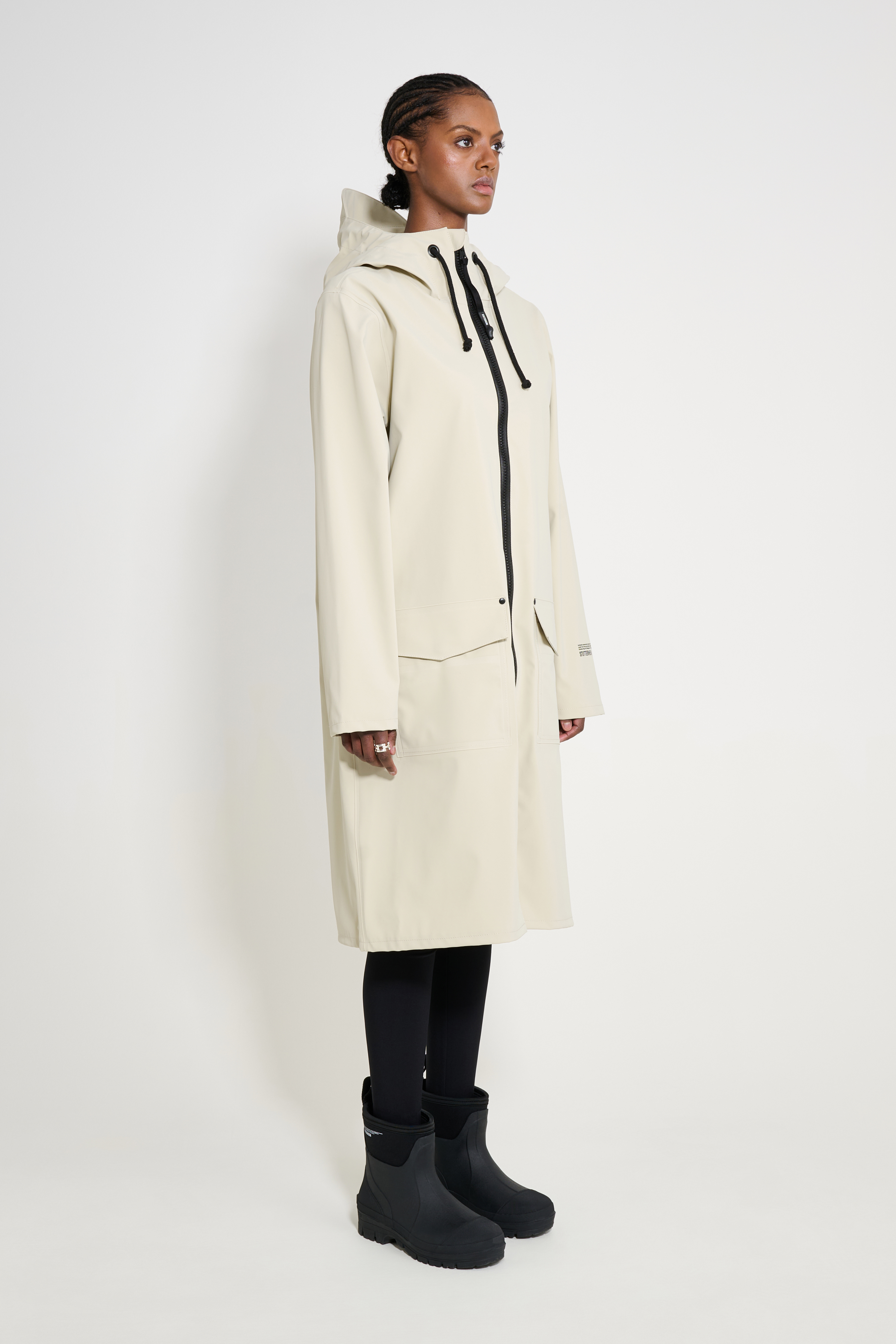 Stockholm Long Patch is a straight-fit knee-length raincoat in sturdy and hard-wearing waterproof fabric. Expertly made, it’s tailored with triple-welded seams for complete protection against the rain. The capped drawstring hood and under-arm eyelets add ease of movement and comfort in uncomfortable weather, while patch pockets with flaps keep valuables safe and dry.