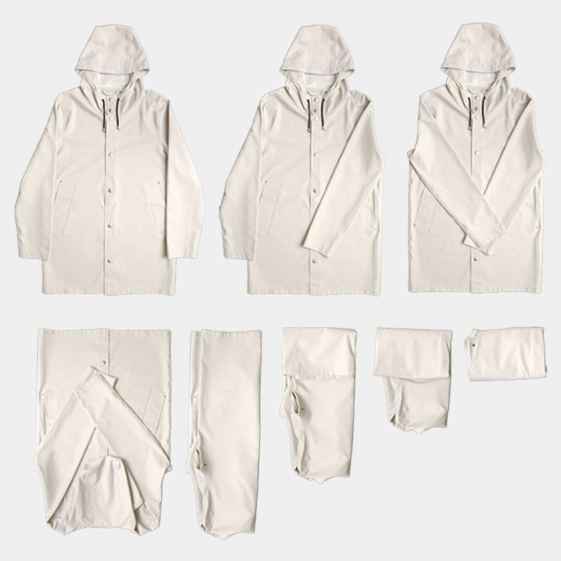 And if you want some variation from the classics, we have the Stockholm Lightweight Zip and Mosebacke Lightweight Zip, both long and short. These variations keep the minimal silhouettes of the original styles, but instead of snap metal buttons, they are equipped with a waterproof zipper. This gives them a sportier impression and is ideal for rain rebels that are always in a hurry.