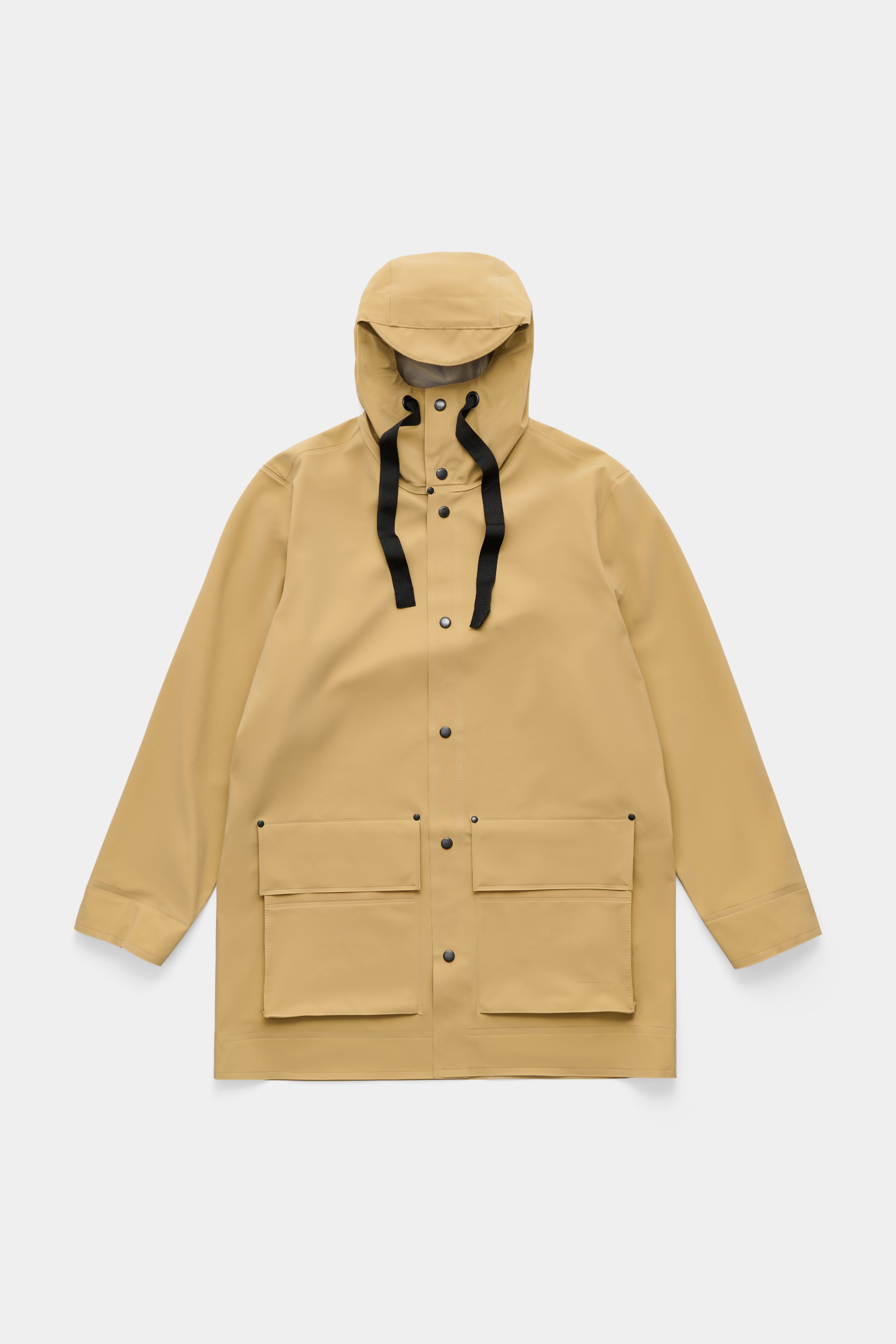 Lightweight 280-gram fabricCompletely waterproofStraight-fitBack yoke with ventilationExtra-high collarMetal snap button fasteningDrawstring hood with rain capWide webbed hood lacesPatch pockets with flapsHidded elasticated sleeve cuffsExterior neck loop with logo artworkTriple-welded seamsUnder-arm eyelets for ventilation+20 000 mm water column pressureDesigned in StockholmMade in Europe