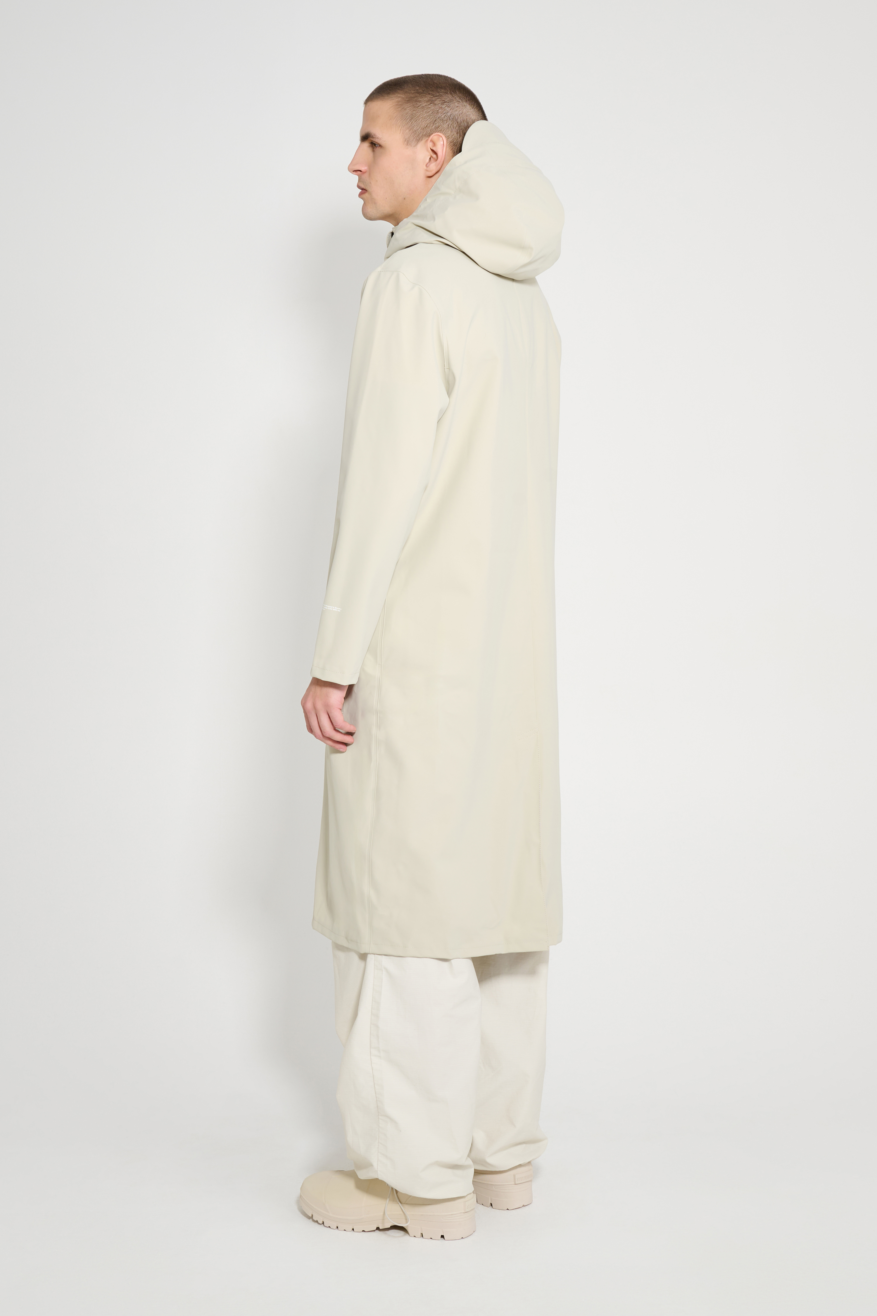 When not in use, we recommend storing your raincoat hanging. Avoid hanging next to garments made of leather or darker denim, to avoid staining from other materials.
